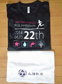 ただ困ったことに1週間前に腓腹筋に軽い肉離れをやったせいで、まともに地面を蹴ることができません。スピードもキロ6′10″以上は痛くて出せません。仕方がないのでヒールストライクのバタバタ足で何とかしのぎ、リタイヤせずに走り切ったという感じです。おかげでタイムを意識することなく、エイドのおにぎりやお好み焼きも律儀に頂き、満腹でゴールできました。