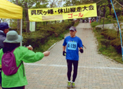 スタートは9時、昨年より1時間遅くなりました。ゆっくり走っていたのですが、登山道に入ってしばらくして、苦しくなり歩きに切り替えです。舗装路を過ぎて登山道に入ってすぐトップが下ってきました。その後、HAKOさん、けにゃさん、ミツさんと下ってきて、頂上周回の手前でツガニさんと出会いました。太腿がケイレンを起こしそうになりながら、1時間3分(昨年より1分早く)で頂上に到着です。下りになっても太腿のケイレンの予兆で飛ばすことができませんが、10名ほど抜いて歩道橋の上のチェックポイントを1時間28分(昨年より2分早く)で通過です。休山への上りを走っていましたが、水を飲んで胃が調子悪くなり、両太腿が痛くて走られなくなり、上りの半分近くを歩くことになりました。そのうちガス欠になったのか体がとても熱くて歩くこともままなりません。頂上までの1Kmは15分かかってしまいました。