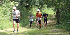 山道は歩いて上りました。同じようなペースのランナーばかりで追い越しはほとんどありません。なんとか去年より楽に上ることができました。6Km過ぎの「日暮ヶ岳山頂分岐」からは急な下りの階段が続き、その後細い山道の下りです。何人か抜いて、7Km過ぎの給水所からは草地を走り、砂利道を上ると9Km地点、更に細い急な山道を下って舗装路に出ると少し上ってゴールに到着です。