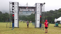 不動池に出ると、前回とは逆に硫黄山には向かわず御池を周って白鳥山に登ります。階段から登山道に入るところで、もうゴールが近いと思っていたら残り3.7Kmと言われました。制限時間まで残りは1時間を切っているのでゴールできるか心配になりました。ゆっくり登って山頂に出るとあとは下り、初めは走っていたのですが途中から歩きになり、なんとかゴールにたどり着きました。