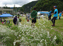 ナンバーカードは「1」、もう一人年配の人が「2」だったので年の順ではないかと話していました。スタッフの人に聞くと「受け付け順」とのこと。「かなり遅く申込したのですが」と聞いてみると「人気が無い大会」とのことでした。