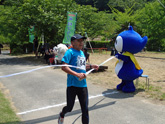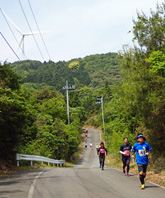 5Kmは約35分20秒で通過、6Km手前から第二折り返しの大星山展望所に向かって上りです。急なところを歩きました。折り返しエイドで給水、あとは一気の下りです。筒井さんとは少し差が開いていましたが、下りで追いつかれると思っていました。しかし、何とか逃げ切ってゴールしました。 (桜井)