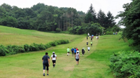 8時30分にスタート、後方からゆっくり走り始めました。3Km地点までは石野さんの後ろに着いていたのですが、上りに入ると遅れてしまいました。気温が低く湿度が高いので走りやすく、なんとかゲレンデまで走りました。ゲレンデは歩き、その先はゆっくり走りましたが未舗装の急な上りは歩き、7Km過ぎで舗装路に出ると雨が激しく降り始め、しばらくは走りましたが時々歩きになりました。残り1Kmを過ぎで去年はケイレンで動けなくなりましたが、今年は予兆もなく頂上にたどり着くことができました。頂上はガスで見晴らしがなく寒いくらいです。