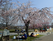 しばらく暖かい日が続いていたので桜も満開を過ぎているのではないかと思っていましたが,予想に反して田布施川河川敷の桜はまだ5〜6分咲き。ただ暖かいだけでは開花は進まないようです。