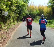 5Km地点を約40分で通過、もう少しでトップはゴールのタイムです(41分22秒)。ここで筒井さんの少し前に出ました。少し下って大星山展望台への登りになります。急なところを歩きました。登ると第二折り返しになり給水所があります。和崎さんは約300m前方、筒井さんは約200m後方でした。折り返すと残り3Km強の下りですが、無理せず前のランナーについて走りました。