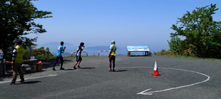 10時にスタート、3人とも後方から走り始めました。まず和崎さんが先に行き、筒井さんと前後しながら、ゆっくり走って登って行きました。
