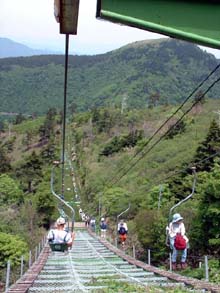 (右)リフトで下山。ちなみにこの「剣山登山リフト」の正規運賃は 大人往復1700円(片道のみは1000円)。 |