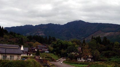 | 湯山温泉・水上荘から望む市房山全景(20日朝) |
