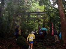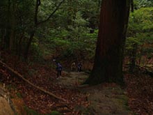 4合目の市房神社まで、杉の巨木が立ち並ぶ参道が続く。