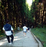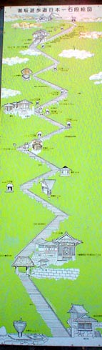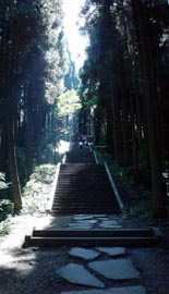 何もない山の中に突如現れる有料駐車場(300円)と土産物店。誰もいないかと思っていたら以外と賑やか。小さな子供が一緒の家族連れも多い。 石段頂上までの所要時間は、ゆっくりで90分、頑張って60分、早い人なら40分とのこと。 | |