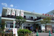 1階は食堂や案内所、2階が浴室。建物の前には無料の足湯がある。