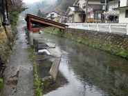 現在は鄙びた山里といった風情の満願寺地区は,鎌倉時代には北条氏の所領であり,文永の役の際,鎮西奉行北条時定が国土安泰を祈願して満願寺を建立した。寺の前を流れる志津川のほとりに温泉が湧き,古くから住民の生活に活用されてきた。共同浴場に隣接する川湯は今も野菜洗いや米研ぎに利用されているが,入浴することも可能(脱衣場も囲いも全くないので相当の勇気が必要?)。 共同温泉は無人で,入口の柱に掛けられた料金箱に入浴料200円を入れる。浴室は男女2つずつで,入ってすぐ目につく浴室は大人が3人も入れば一杯になりそうな狭さ。洗い場も1ヶ所しかない。建物の奥に進んだところには2つの湯舟(1つは上がり湯)を備えた広い浴室があるが,入口には特に案内もないので,知らずに来た人は手前の狭い浴室にびっくりしたまま帰ってしまうかも。源泉温度は44℃と若干熱め。