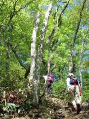 沢を過ぎ、自然林に覆われた急坂にとりつく。