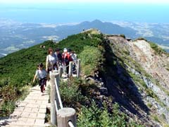 9合目からは、崩落防止と植生保護のため渡された木道の上を歩く。