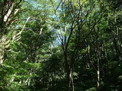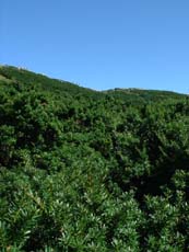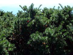 山頂部に自生するイチイの変種、ダイセンキャラボク。国指定の天然記念物。