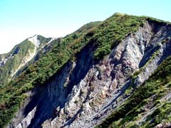 刃のように鋭くなって南面・北面へなだれ落ちている。まるで両面から大山を切り崩しに