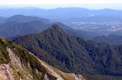 (中)奥にそびえるのが大山最高峰、剣ヶ峰(1729m)。一般登山者は