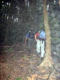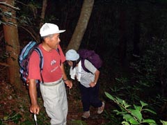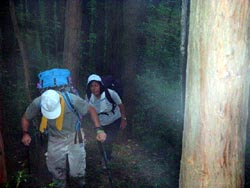 あいにくの曇り空で、登山開始直後からの樹林帯の中も、夏の朝とは思えない暗さ。