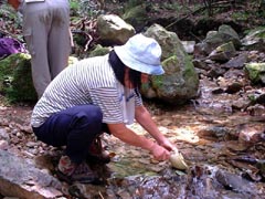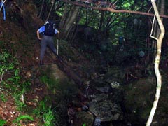 沢に出る。ここからしばらくは沢沿いに遡上。下山時の「お楽しみ」を渓流の中へ・・・