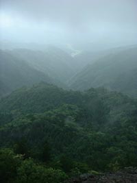 (中)天狗岩より山口市仁保地区(仁保上郷)を望む。昔はこちらからも道が開かれており