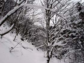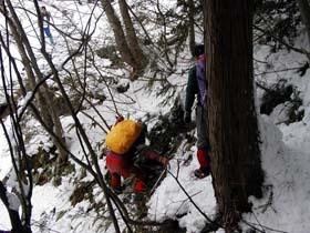 雪に覆われた渓谷を遡上し、藪ヶ峠に到着。