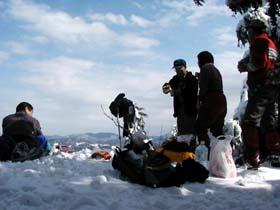 山頂に到着。前回(01年4月)に比べ、葉が落ち、積雪で地面が高くなったぶん