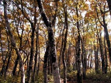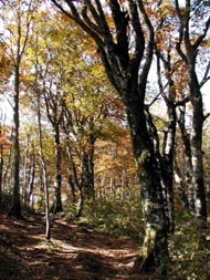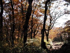 国指定天然記念物・ブナ純林の紅葉。写真を撮りながらゆっくり歩く。