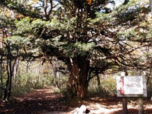 「・・・故神避りましし伊邪那美命(イザナミノミコト)は出雲国と伯伎国との境比婆の山に 葬しまつりき」と古事記に記されているところから、比婆山は、国生みの神伊邪那美命の 御陵のある山として、古来より信仰を集めている。 山頂のブナ純林の中に開けた円丘の中央には、樹齢千年を越える七本のイチイの老木に囲まれ、 伊邪那美命の陵墓とされる苔むした巨石が横たわっている。また、このあたり一帯は、 比婆山伝説地として県史跡に指定されている。