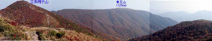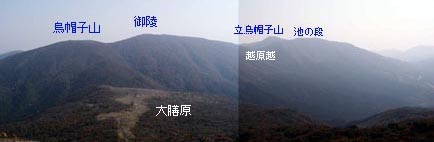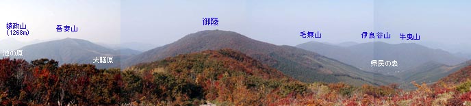 比婆(ひば)山 御陵(ごりょう)/1264m 池の段(いけのだん)/1279m 立烏帽子(たてえぼし)山/1299m 吾妻山からの眺め |