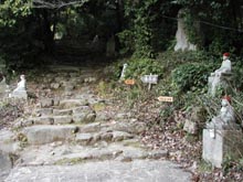登山道を40分ほどでいったん車道に出る。400mくらい進み、再び登山道へ。