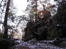 大岩への分岐点を過ぎると、巨石が目立つようになってくる。岩陰にはまだ雪が残っていた。