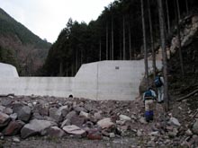 上流まで沢をつめると、炭焼き小屋跡とおぼしき石垣(左)。