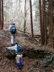 山頂からは、通常ルートの林道を通って平家屋敷跡に下り、清水谷へ戻る。
