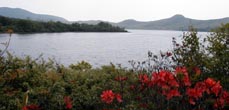 猫石ピークからは森の中をひたすら下り、レンゲツツジが咲き乱れる雄国沼のほとりに出る。 |
