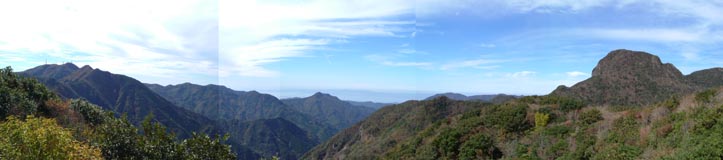 佐賀県と長崎県の境界上にピークを連ねる五家原岳(1057m)、多良岳、経ヶ岳などの山群を総称して「多良山地」という。雲仙と同じ火山帯に属し、浸食が進んだことによる急峻で特異な山容と深い谷が特徴的。また主峰の多良岳は真言密教の修験場として古くから名を知られてきた。 多良岳への登山ルートは、金泉寺直下の広域林道(舗装)から登るコースが最短だが、他に五家原岳からの縦走路や黒木渓谷(長崎県大村市)からの登山道、平谷キャンプ場(佐賀県鹿島市)から経ヶ岳を経て金泉寺・多良岳に至る縦走ルートなどがある。 山中は植物も豊富で、早春のマンサク、初夏のシャクナゲのほか、7月下旬には天然記念物のオオキツネノカミソリが花を咲かせる。 五家原(ごかのはら)岳からの眺め(03.10.29) | |