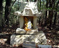 (「椎尾八幡宮縁起」より要約。右画像は登山道脇にあった祠。荒競の神か?) |