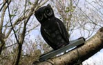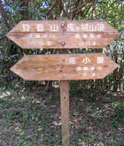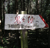 木漏れ日が気持ち良い尾根道を5分ほどで「鬼小屋」に到着。地元の中学生が建てたという小屋は現在建て替え中。側の桜の木?に括り付けられたフクロウが登山者をじっと見つめている。![]() |