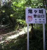 下関市から県道244号線を北上、竜王山の吉見登山口、吉見温泉を過ぎて豊浦町に入り、右手に立つ「鬼ヶ城窯」と「鬼ヶ城山登山道入口」の看板手前の細い道(舗装路)を行き止まりまで進むと登山者用駐車場につく。ここから標識に従って登山道に入る。 |