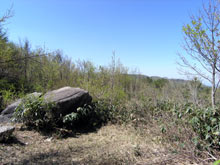 ![]() 展望地・岩の上からの眺め。周囲の木が伸びて山頂同様に展望がなくなるのも時間の問題か。 |