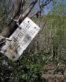 下山路は、新ルートとして整備し直された旧登山道(ややこしい)を下る。従来ルートとの分岐は、山頂からの下りでは特に何の表示もなかったが、下りてきて木橋を渡ると従来ルートの入口には「立入禁止」の標識(足下に小さくだが)が立てられていた。今後、従来ルートが整備されず荒れてきた場合、縦走からの下山時には注意が必要かも。 登山道を出て舗装路を歩き、車に帰ってきたらちょうど3時間だった。 |