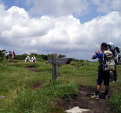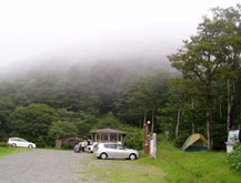 山頂から、国民休暇村のある池の原へ下る。昨年までは毎年6月に吾妻山山頂〜大膳原をコースに含めたクロカン大会が行われていたが、比和町が庄原市に吸収合併されたのを期に中止(廃止)されてしまった。ユニークな大会だっただけに再開をお願いしたい。休暇村では20分休憩し、南の原経由で大膳原へ戻り、烏帽子山へ。 |