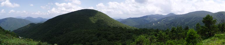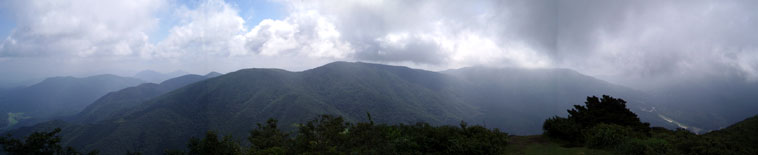 ![]() 毛無山山頂からの眺め。比婆山の奥に吾妻山、猿政山などの稜線が連なる。 |