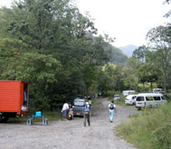 山頂からは、一気登山道に入り駐車場に下る。高低差約800mの急坂を下りで使うのは実はこれがはじめて。疲れ切った足は思うように上がらず、木の根や石にけつまずくことしばしば。おまけに火男火売神社の石段は苔生してつるつるとよく滑り、「登山大会」の上り以上に時間がかかってしまった。下山後は筌ノ口温泉に入浴後、翌日の登山開始地となる男池駐車場へ移動し、テントを張った。 |