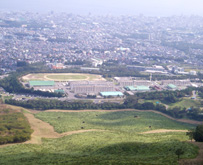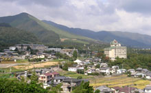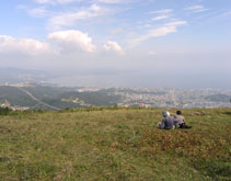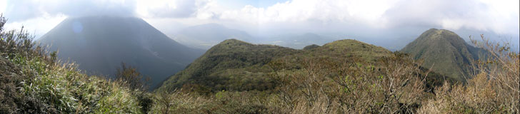 ![]() 鞍ヶ戸(第1峰)付近からの眺め。左が由布岳、右が内山。 |