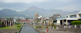 3連休を利用した登山旅行の1日目は「べっぷ鶴見岳一気縦走大会」。鶴見岳ロープウェイの駐車場(登山者用の駐車場は、舗装路奥の草斜面)を出発し、まずは一気登山道を伝い堀田温泉まで下る。 |