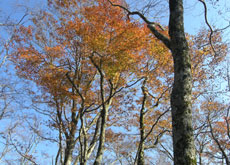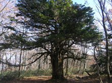 御陵の中にいながら烏帽子山や吾妻山が見える。明るく、見通しの良い森。ほとんどの木々が落葉してしまった中、同じ装いの門栂だけが異彩を放っている。 下界ではまだまだ暑い、今日も夏日だなどと言っているうちに、山の上は冬支度をもう済ませようとしている。ふもとの秋が深まるのも、これからあっという間だろう。 写真を撮りながら、池ノ段へ向かった。 |