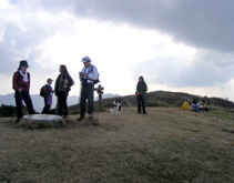 出雲峠から烏帽子山へ。上るにつれ植林帯から自然林に移りかわる。紅葉の森を出ると、落葉が進む灌木と枯草が広がる山頂。 毛無山に比べ、登山道も山頂も行き交う人が多い。 少し休んで、向かいの吾妻山・大膳原へ下る。 |