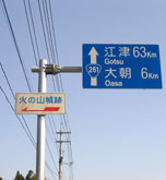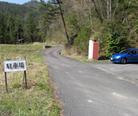 旧・千代田方面から国道261号線を北上、旧・大朝町との境にある中山峠を越えると間もなく道路左手に「火の山城跡」の標識と案内看板が現れる。ここを左折して舗装された林道に入り、200mほど進むと「駐車場」の看板と数台分の駐車スペースがある。 |