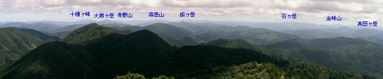 ![]() 北東には、十種ヶ峰、青野山、島根県との境界をなす西中国山地西端の山々が連なる。 |