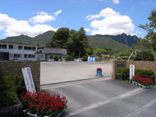 クライミングウォールが設置された三倉平駐車場から、まずは瓦小屋山へ登るため、来た道を引き返して、栗谷へ下る。栗谷小学校の先で県道に出て、右に少し行くと「大栗林」のバス停があるので、右折して細い道を再び山の方へ向かう。 |